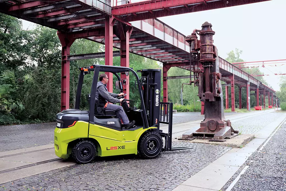 Der CLARK Raider (L25-35XE) ist eine umweltfreundliche Alternative zu Gabelstaplern mit Verbrennungsmotor, ohne Kompromisse bei Leistung, Abmessung oder Zuverlässigkeit. Ausgestattet mit moderner Lithium-Ionen-Technologie sorgt er für lange Einsatzzeiten und kurze Stillstandzeiten beim  Laden.
